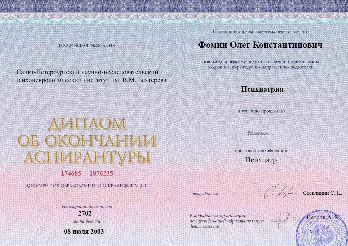 Я обратился к Фомину О.К. с проблемой алкогольной зависимости. Пил много лет, потерял работу, жена ушла, забрав детей. Понимал, что дальше так жить нельзя, но самостоятельно бросить не мог. Олег Константинович с первой же встречи вселил в меня надежду, что все можно исправить. Он составил индивидуальный план лечения, подобрал необходимые препараты. Но главное - на сеансах психотерапии мы выяснили первопричины моего пристрастия к алкоголю, много работали над повышением самооценки и мотивацией. Сейчас я уже 8 месяцев не пью, устроился на новую работу, стараюсь наладить отношения с детьми. Я очень благодарен Олегу Константиновичу за то, что он, по сути, спас меня от самого себя и дал шанс начать новую жизнь.